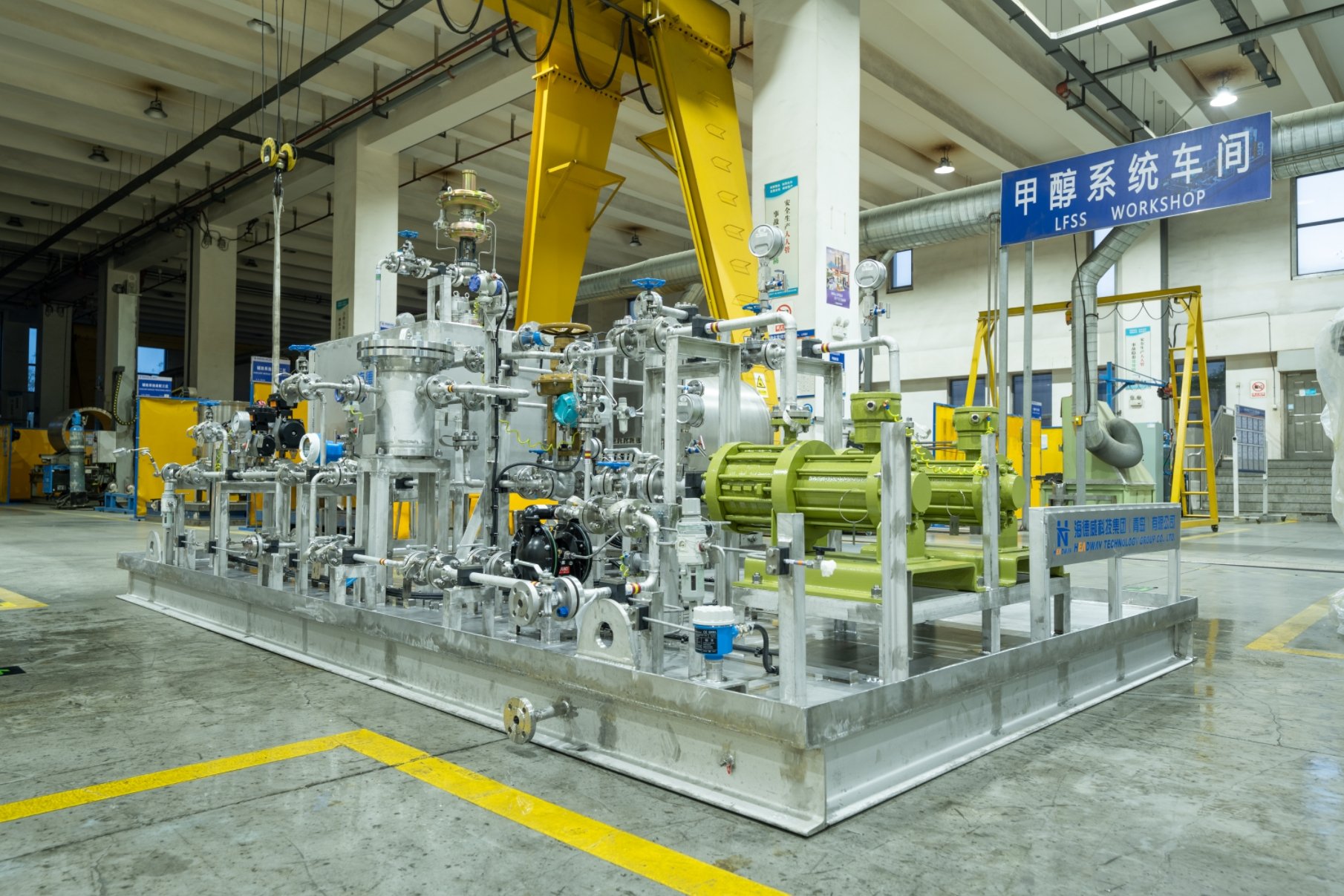 中船發(fā)動機有限公司大柴公司甲醇雙燃料試車平臺,配備了由海德威科技集團提供的涵蓋甲醇燃料供給模塊、加注儲存系 統(tǒng)、輔助換熱系統(tǒng)、氮氣系統(tǒng)以及控制安保系統(tǒng)等核心模塊在內(nèi)的一站式系統(tǒng)解決方案。該方案及其配套模塊由海德威自主 研發(fā)和生產(chǎn),是國產(chǎn)首個成功應(yīng)用的甲醇燃料供給系統(tǒng)成熟解決方案。